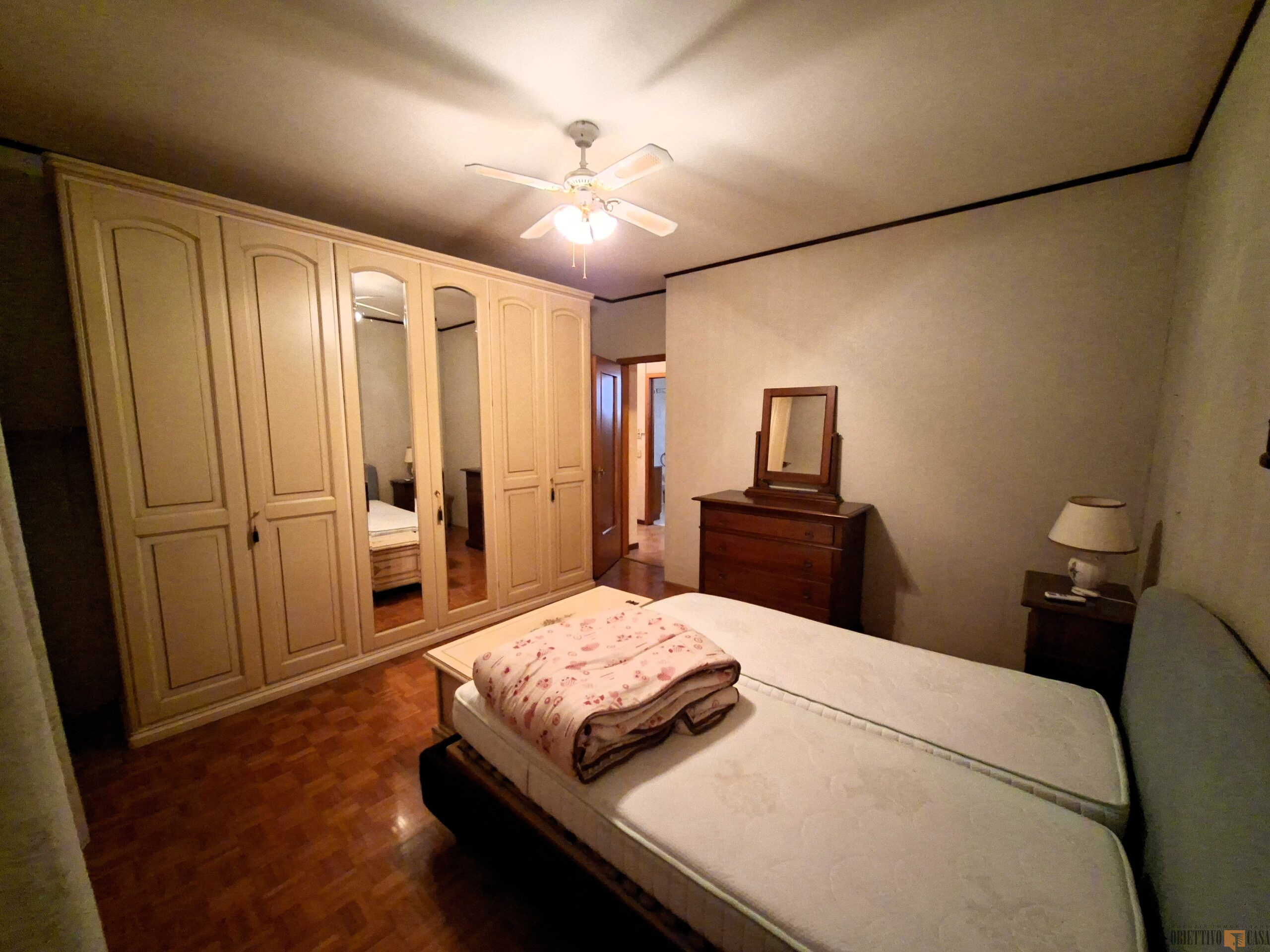 L’appartamento dispone di una camera matrimoniale spaziosa, una camera singola e un bagno con doccia.